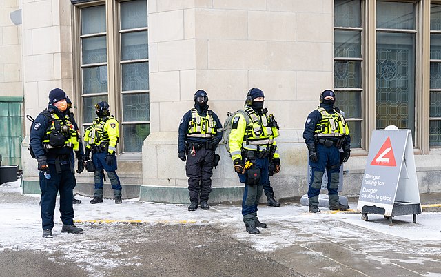 La Gendarmerie royale du Canada (GRC) est autorisée à faire appliquer les règlements municipaux et les lois provinciales et la police dispose de « plus d’outils pour rétablir l’ordre », notamment la possibilité d’imposer des amendes et d’emprisonner des personnes. Par exemple, la Loi sur les mesures d’urgence confère au gouvernement fédéral le pouvoir d’imposer des amendes pouvant aller jusqu’à 5000 dollars ou d’emprisonner les personnes qui enfreignent les ordres jusqu’à cinq ans.