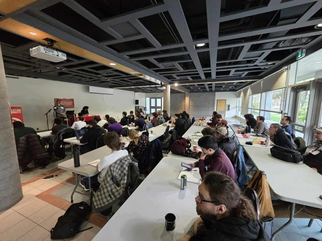 Le dimanche, une présentation portait sur la grève générale du Front commun de 1972. Kelly-Anne Emond, également militante du PCR à Québec, y a mis en lumière l’héritage révolutionnaire de la classe ouvrière québécoise, souvent enseveli sous les mythes nationalistes entourant la Révolution tranquille. L’année 1972 marque un moment charnière où la classe ouvrière québécoise aurait pu prendre le pouvoir. Malheureusement, ce n’est pas arrivé, faute d’une direction capable de mener les travailleurs jusqu’à la victoire révolutionnaire.