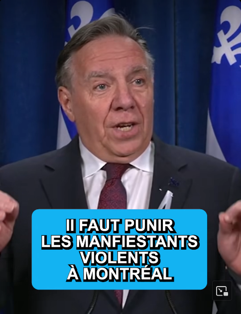 Tout a commencé après la manifestation de soir contre l’OTAN, qui a eu lieu le 22 novembre à Montréal. Legault s’est empressé de calomnier les manifestants sur X. Puis, quelques jours plus tard, il en a rajouté. Même après que des informations ont révélé que l’incendie rapporté d’un véhicule avait été causé par la police elle-même, il a persisté dans sa condamnation des manifestants, les traitant de voyous en conférence de presse.