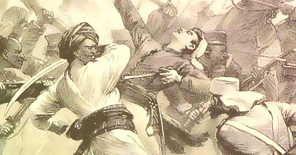 Durant la révolte, qui a duré plus d’un an, les rebelles ont répondu à la brutalité du colonialisme britannique en tuant 6000 soldats et civils, incluant femmes et enfants. Les Britanniques se sont vengés cent fois en tuant 800 000 Indiens dans les combats contre la rébellion et via les famines et les épidémies qui ont suivi.