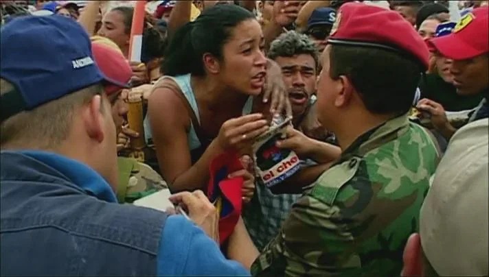 À l’issue du tournage, jusqu’à deux-cents heures de matériel étaient mises à la disposition du monteur! Les réalisateurs, dans la foulée de ce projet originellement destiné à brosser le portrait d’un politicien insolite, se sont surpris à témoigner d’une révolution en marche. Chávez y apparaît non pas comme un simple personnage excentrique, mais bien comme le dirigeant qui canalise tant les revendications des travailleurs et des paysans pauvres que les foudres de l’oligarchie. Chávez est au centre de l’attention, mais la marée montante de la lutte des classes irrigue tout le film. Le cadrage initial, trop étroit, ne peut ainsi faire autrement qu’éclater.