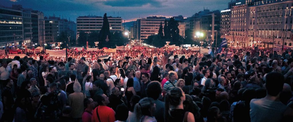 Au cours de l’été 2011, des centaines de milliers de personnes ont occupé la place Syntagma, à Athènes, et d’autres places dans tout le pays. Elles s’inspiraient directement des événements révolutionnaires qui, en Egypte, ont fait tomber le dictateur Hosni Moubarak, soutenu par les Etats-Unis. De nouveau, à l’hiver 2012, un demi-million de manifestants firent le siège du Parlement.
