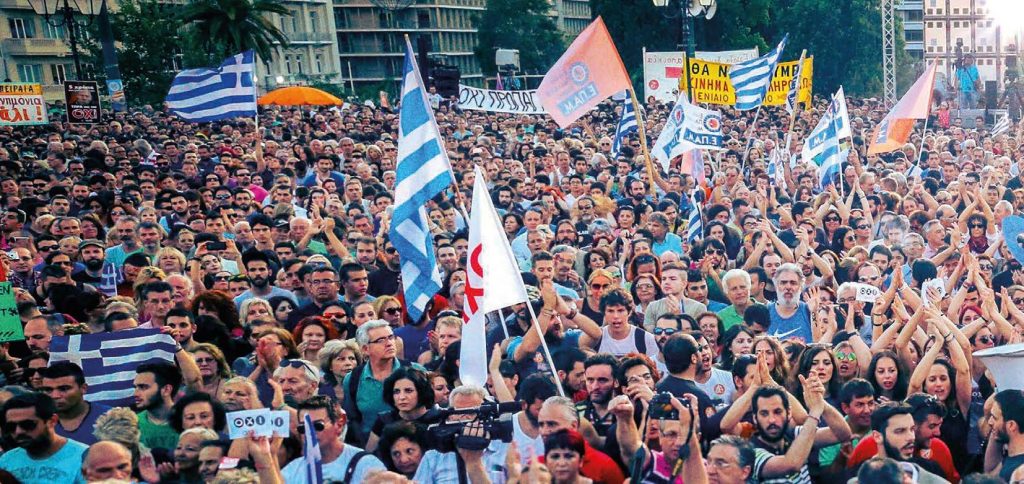 Des assemblées de quartier, des comités locaux, une campagne de propagande sur le terrain et des rassemblements innombrables donnèrent un puissant élan au NON. L’ensemble fut couronné, dans la capitale, par quelques-unes des plus grandes manifestations de l’histoire grecque, dont un rassemblement de près d’un demi-million de personnes, le 3 juillet. Ce mouvement était largement spontané.