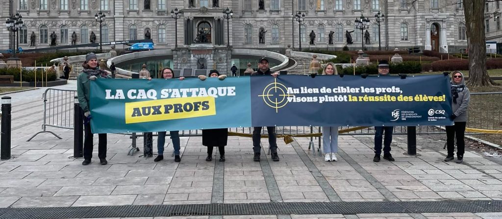 Résultat, les deux principaux partis, le Parti québécois et les libéraux, se sont effondrés en 2018, tandis que la CAQ s’est hissée au pouvoir. Vu par bien des gens comme un « nouveau » parti et surfant sur une vague anti-establishment, Legault et la CAQ ont fait toutes sortes de promesses, allant jusqu’à dire que « même si le Québec devait faire face à un ralentissement économique, le financement de l’éducation sera protégé. » Quelle hypocrisie!