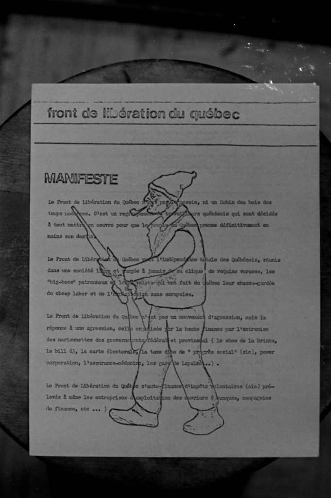 Pour gagner du temps et donner l’impression qu’il est prêt à négocier, le gouvernement Trudeau accepte que le manifeste du FLQ soit diffusé. Il est lu à Radio-Canada le 8 octobre : « Travailleurs du Québec, commencez dès aujourd’hui à reprendre ce qui vous appartient; prenez vous-mêmes ce qui est à vous. […] Faites vous-mêmes votre révolution dans vos quartiers, dans vos milieux de travail. »
