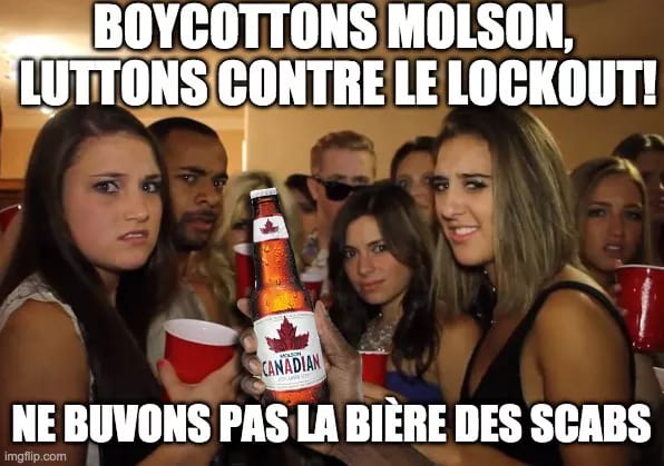 Boycottons Molson! Ne buvons pas la bière des scabs!