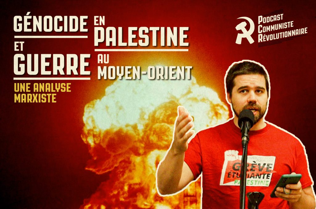 Après un an de guerre génocidaire contre les Palestiniens, Netanyahou vient d’étendre le front au Liban. Les responsables israéliens ont ouvertement parlé de « bombarder le Liban jusqu’à l’âge de pierre » et de transformer Beyrouth en un nouveau Gaza. À tout moment, l’agression israélienne pourrait déclencher une guerre régionale plus large aux conséquences imprévisibles. Dans sa présentation, Benoit Tanguay, rédacteur du journal Révolution communiste, nous éclaire sur la situation au Moyen-Orient et la réponse communiste à l’horreur de la guerre impérialiste.